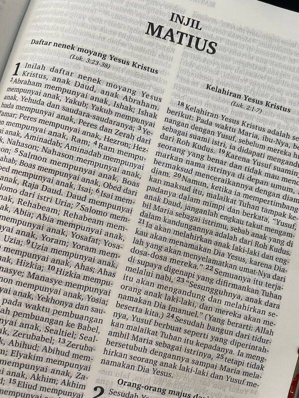 De Bijbel is een getuige van historische gebeurtenissen zoals de buitengewone schepping van de wereld waarin we vandaag de dag leven. Zonder dit boek zouden de westerse en oosterse werelden er vandaag de dag heel anders uit zien als de gebeurtenissen in dit boek nooit hadden plaatsgevonden. Lees dit boek met een open hart en geest. Dit boek bevat de ware waarheid over God, over het leven, de menselijke natuur en ons hart als mens. Het Evangelie van Johannes is een goed beginpunt, maar lees het hele Nieuwe en Oude Testament. Je zult versteld staan van de ontdekking van God en jezelf. Als God werkelijk jouw rechter is en je op een dag werkelijk je leven aan Hem zult geven, moet je je werkelijk realiseren wie Hij werkelijk is en welke dingen Hij verlangt, voordat de verdrukking komt. In principe helpt dit boek u bij het omgaan met de gebeurtenissen die voor ons bestemd zijn. Samensteller: Indonesisch Bijbelinstituut (LAI) Uitgever: Indonesian Bible Institute (Jakarta) Afdruk: 1986 Dik: 1.049 pagina's (Oude Testament) + 344 pagina's (Nieuwe Testament) Afmeting: 22 x 14,5 cm