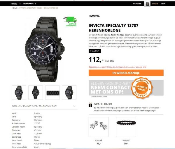 Kleur van de horlogekast : Zwart