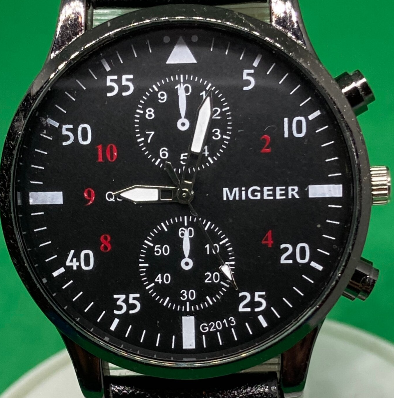 Je ziet ze regelmatig bij mensen om de pols: de grote horloges met enorme cijfers en massieve wijzers. Meestal zijn dit dure horloges van TW Steel en U-Boat. Het horlogemerk MiGeer bewijst dat zulke horloges helemaal niet duur hoeven te zijn! Dit horloge is 45mm breed en oogt ook grof en stoer. De polsband is van kunstleer en amper van het echt te onderscheiden. Met dit gave horloge kun je niet alleen gemakkelijk de tijd aflezen, je voegt ook echt een tof accessoire toe aan je outfit.