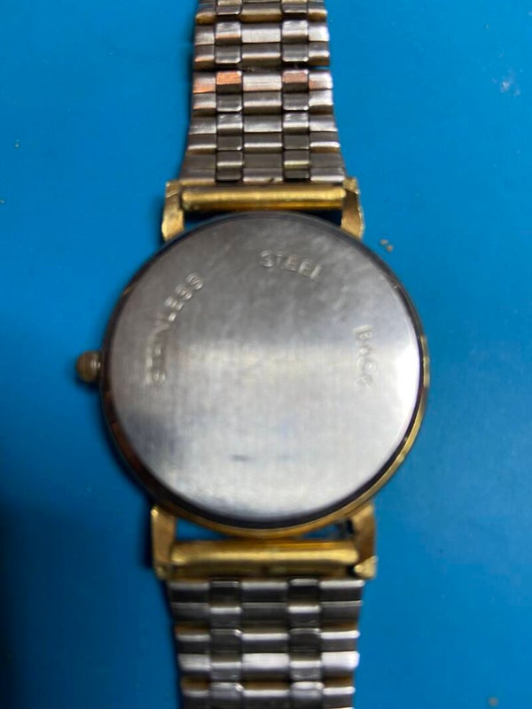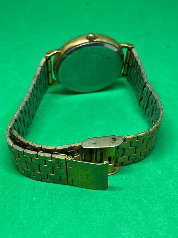 Dit vergulde heren quartz polshorloge met witte wijzerplaat met vergulde accenten heeft een diameter van 34 mm en een lengte van 24 cm