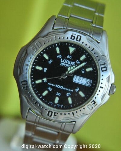 Sportief ogende RVS Lorus V743-8B40. faux bezel draait niet, alleen voor uiterlijk.