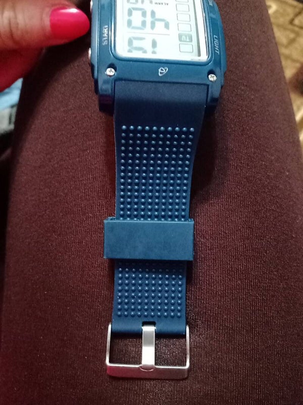 Het horloge is voorzien van tijd, dag, datum, stopwatch, wekker, achtergrondverlichting, zie foto in het donker.De band is verstelbaar.