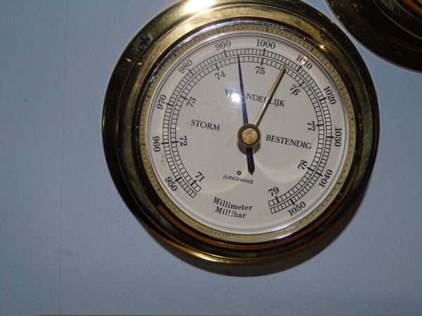 Scheepsklok messing - 3 plus baro-, en hygrometer van Junghans