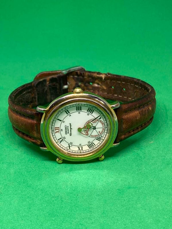 Seiko quartz chronograaf - 8m25-8020 - verguld - in volledige werkende staat - nieuwe batterij gemonteerd
